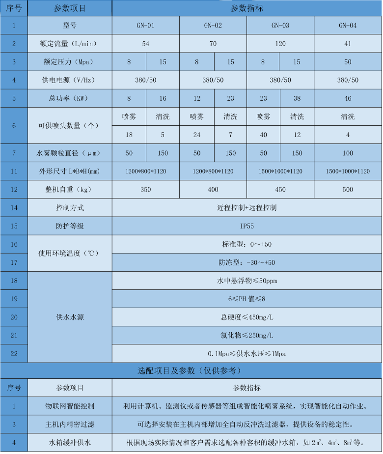 高能噴霧裝置主要是由高壓柱塞泵加壓系統(tǒng)、調(diào)壓系統(tǒng)、多路控制系統(tǒng)、主機(jī)排污系統(tǒng)、水源凈化系統(tǒng)(選配)以及電控系統(tǒng)等組成。